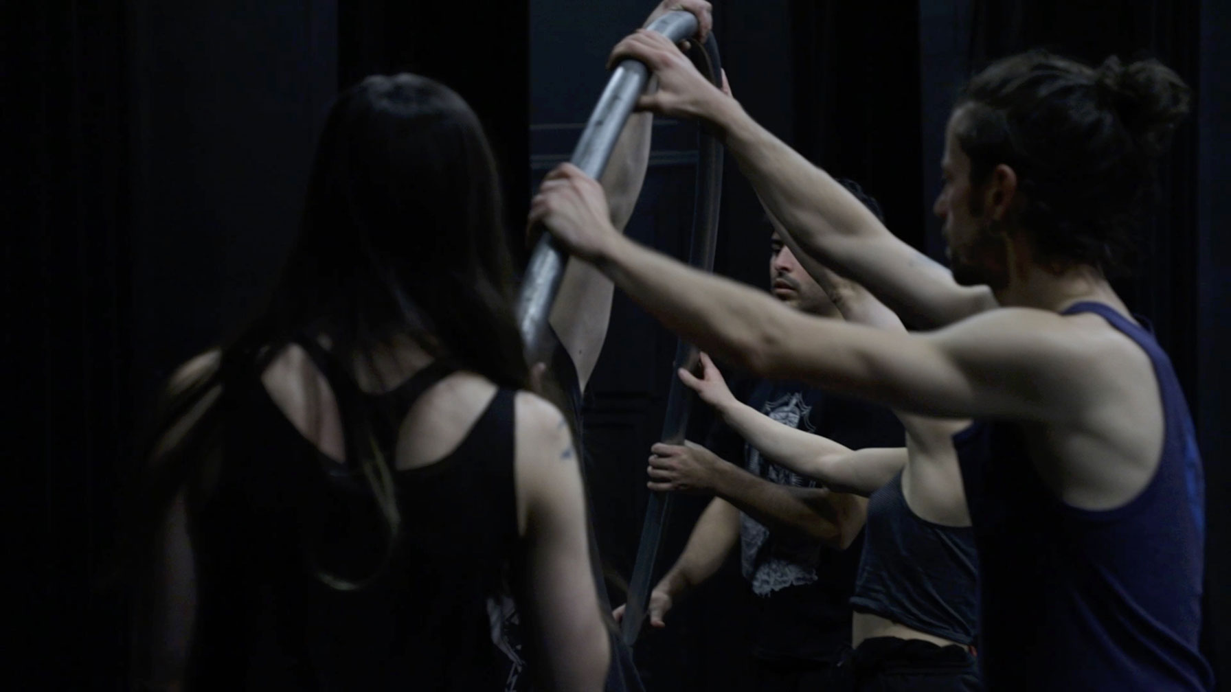 RHYTHM, is a sensory ethnographic film that seeks to immerse the viewer in the textures of rhythm-making. The film follows the rehearsals and performances of an experimental circus troupe in Montreal, Collectif 4237 – a troupe composed of circus artists practicing contortion, roller skating, juggling, trapeze, aerial rope, and cyr wheel. The film asks, What is rhythm? How is it achieved among performers? What can being immersed in a rhythm communicate that words cannot?